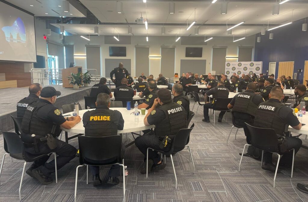 With two of his cops recently shot and hospitalized in critical condition, Orlando police Chief Eric Smith still took the time to gather all of his agency’s SROs, all of whom trained throughout the summer (using actual students in scenarios, so that they, too, can become more aware/responsive), for a pre-semester pep talk, underscoring, “Know that in the face of danger, our officers are trained and willing to put their lives on the line for our community, including our kids.
