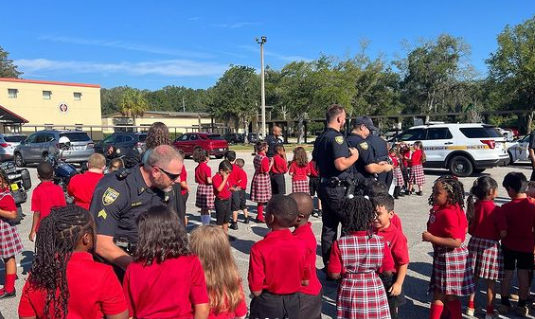 The morning of the 22nd commemoration of the unfathomable events on 09/11/01 was met with children’s cheers and chants for a batch of badged heroes with the Jacksonville Sheriff’s Office in Florida.