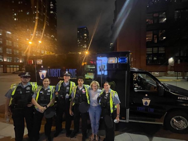 In the photo, the woman clad in civilian attire is Elizabeth French, executive director of Light the Line Foundation, who is personally invested in the Chicago area and harbors somber reasons for her imperative role in supporting the courageous men and women who pin justice badges and go out to fight the good fight: