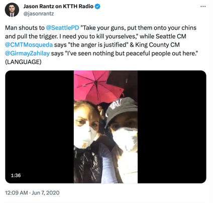 “But they can’t, and that’s your fault. You’ve failed them. You’ve failed us. To quote a comment on KOMO [News 4] from a fellow former LEO, ‘This is a ‘Lord of the Flies’ scenario.’”