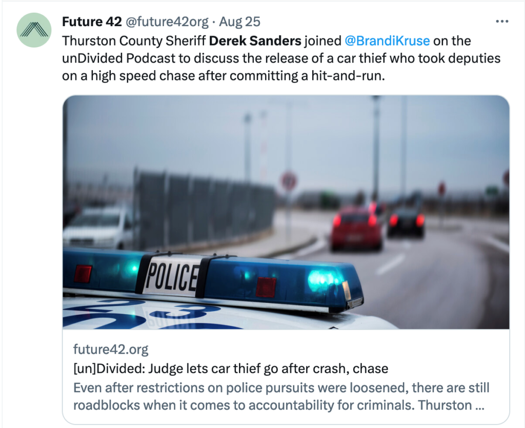 WA. State Rep. Travis Coture (R-Allyn) said this is a “growing problem that sends a clear message to criminals that their actions have no consequences and Washington will not hold them accountable. If we don’t change that message soon, our families will become more at risk than they already are.”